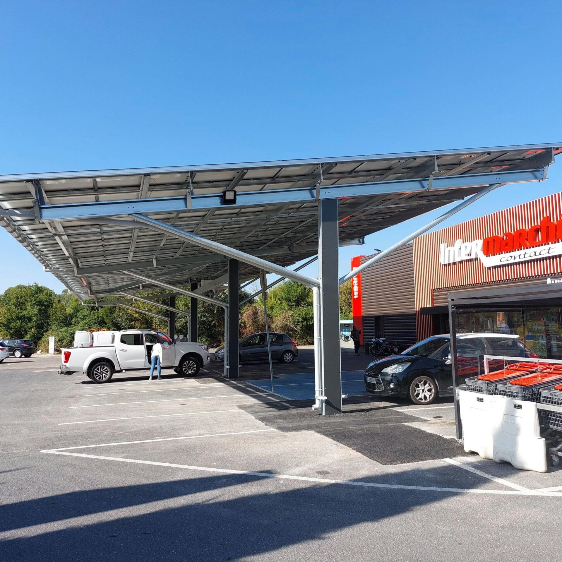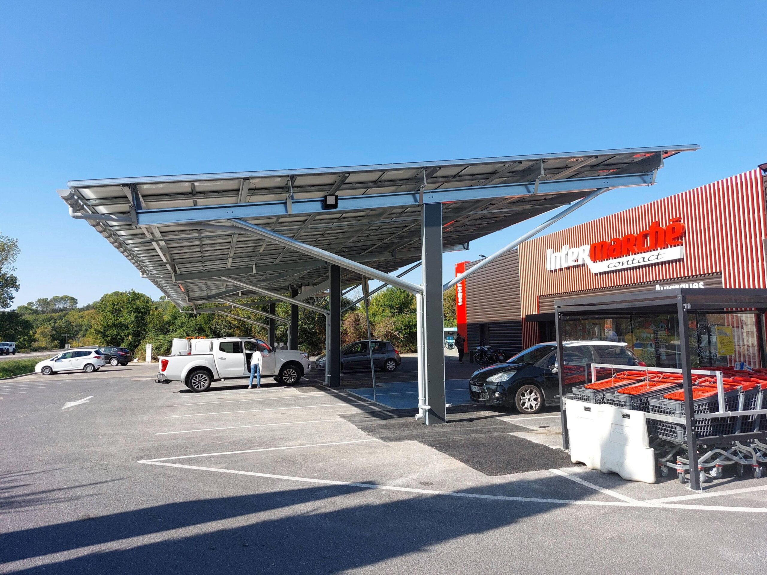 En résumé, l’installation d’une ombrière photovoltaïque de 80 kWc sur le parking de l’Intermarché d’Aujargues est un exemple concret de la capacité d’AES à accompagner les acteurs économiques vers un avenir plus vert et plus durable.