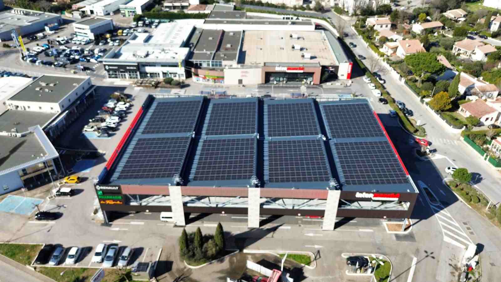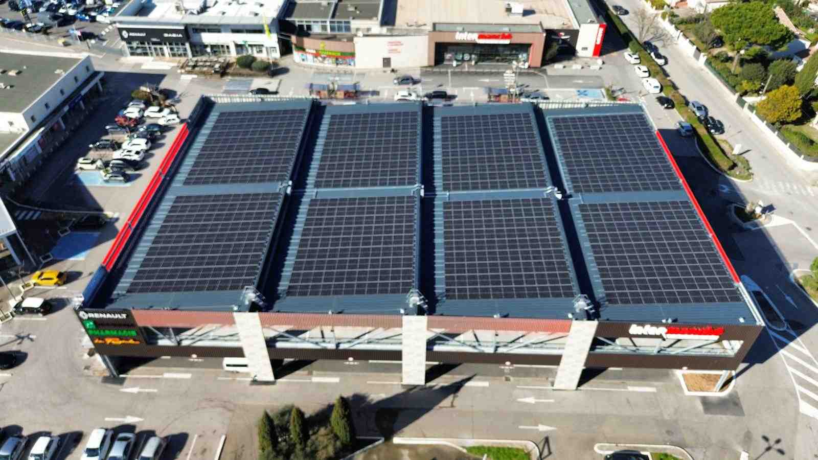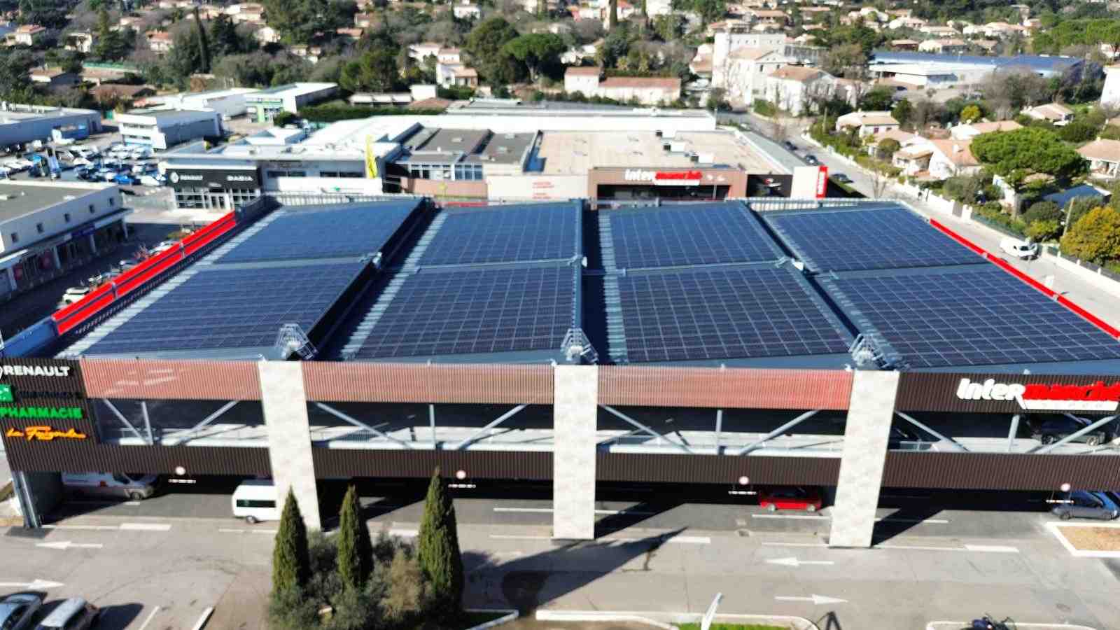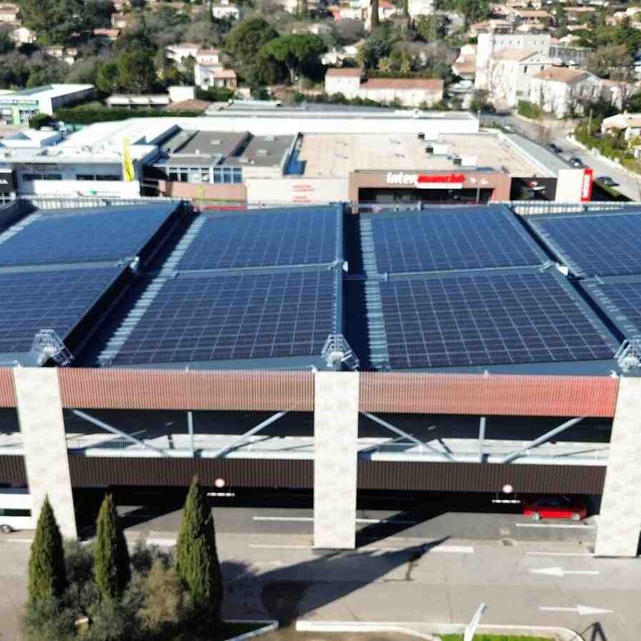 L’Intermarché de Sommières a confié à AES la réalisation d’un projet photovoltaïque d’envergure, avec l’installation d’une centrale solaire de 368 kWc répartie sur la toiture d’un parking Silo. Cette infrastructure innovante permet à l’enseigne de conjuguer performance énergétique, mobilité durable et réduction des coûts.