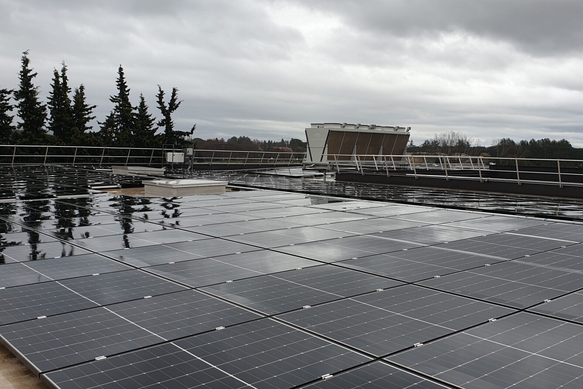 Conception et intégration des panneaux sur des ombrières avec un trespa alu qui permet de passer le dossier avec les bâtiments de France, alliant efficacité, robustesse et esthétisme.