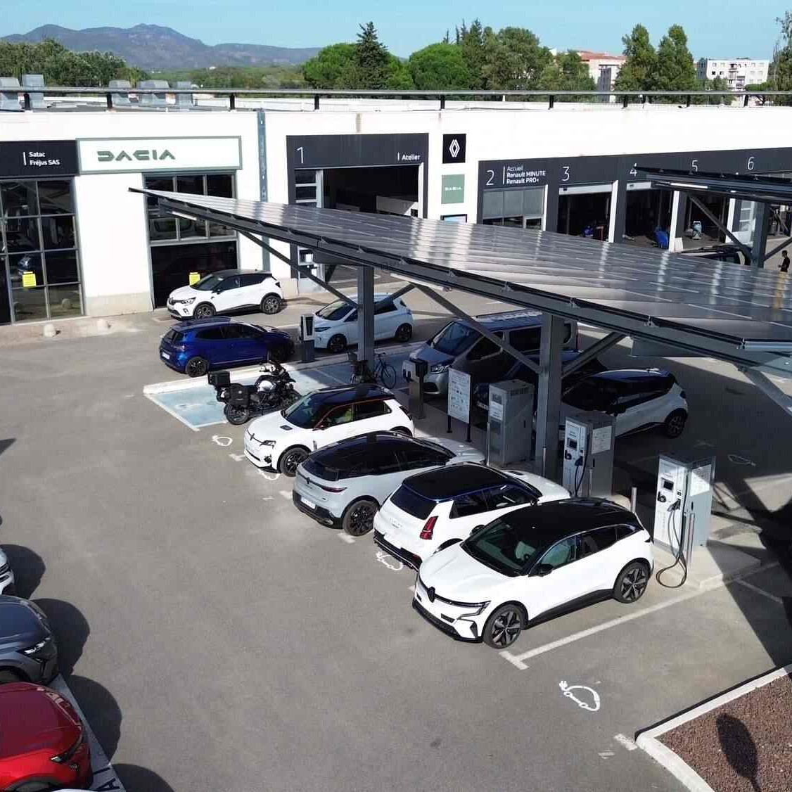 La concession Renault Fréjus a confié à AES la réalisation d’un projet photovoltaïque d’envergure, avec l’installation d’une centrale solaire de 264 kWc déployée sur cinq ombrières. Cette infrastructure innovante permet à l’enseigne d’allier performance énergétique, mobilité durable et maîtrise des coûts.
